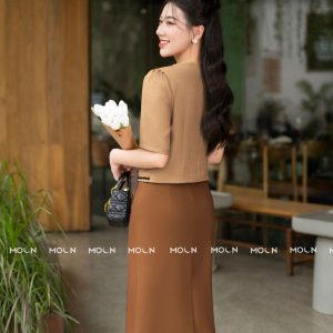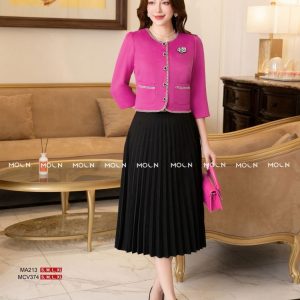 Áo khoác crop công sở thiết kế độc quyền MOON, áo cổ tròn chân váy đầm xếp ly sang chảnh, bánh bèo MA201 MA213